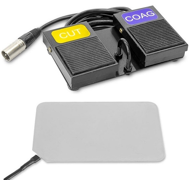 - Возможность подключать монополярные электроды (нож, игла, петля, шарик и др.) и биполярные инструменты (пинцет, ножницы, лигирующие зажимы, лапароскопические инструменты)
