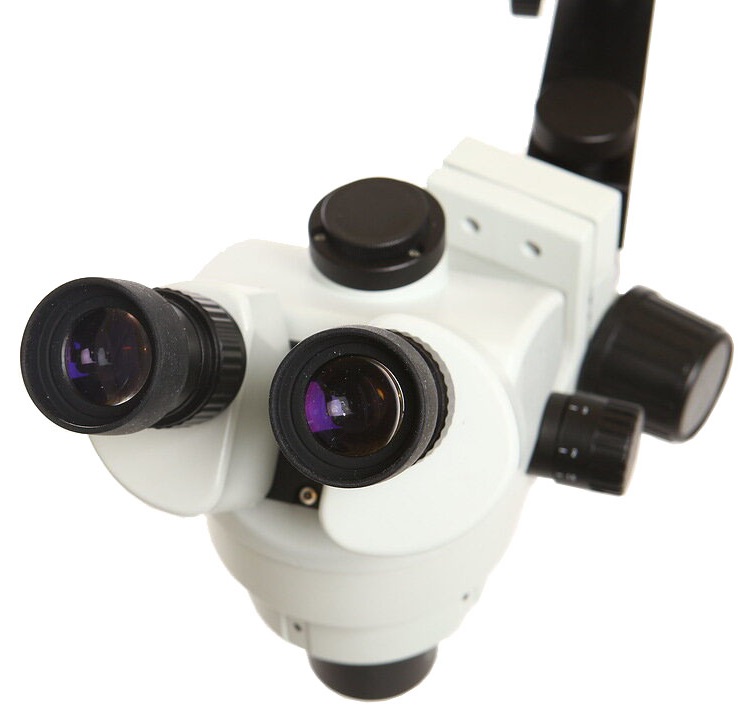 Микроскоп имеет широкоугольные окуляры, позволяющие увеличить поле зрения, адаптированные для врачей использующих очки.